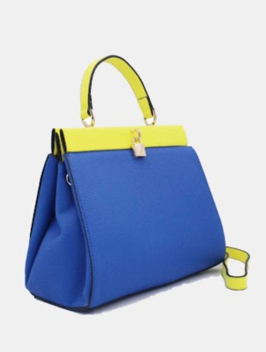 Crocodile effect handtas met afneembare schouderstrap blauwgeel