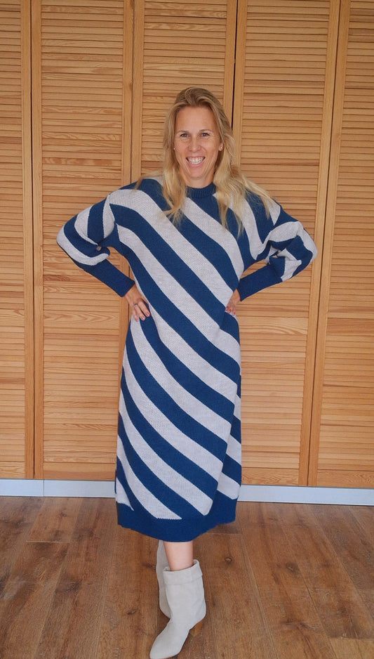 AanbiedingStripes jurk beige petrol