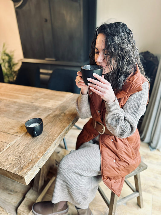 Lange jurk met opstaande kraag en rits bruin