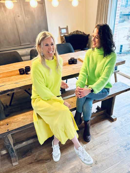 Sassy satin hemdjurk lang fluogeel incl riempje